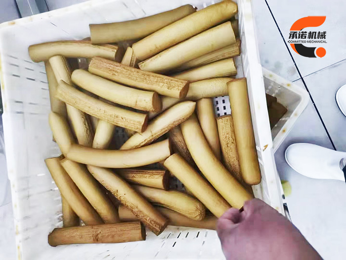 豆腐卷機又稱素雞機器是代替(tì)人工卷豆腐卷的設備,素雞是用豆腐皮為主料(liào)卷成圓棍形加熱製成的,口感和味道和肉差不多,能烹調能涼拌,非常好吃,人工生產素雞步驟十分繁瑣,而且豆腐皮卷一定要捆特別緊,不然成不了型,這樣就需要一台自動素雞機。